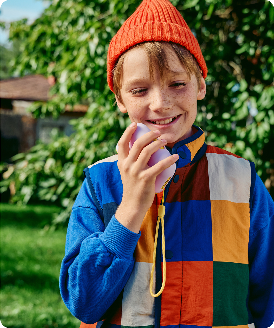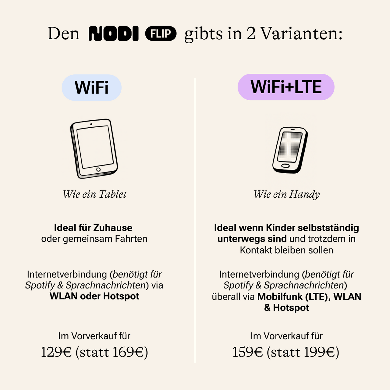 Mit dem NODI Flip können Kinder ihre Lieblingsmusik auf Spotify hören, Hörbücher entdecken und Sprachnachrichten an Freunde und Familie schicken - ohne Bildschirmzeit, ohne Ablenkungen.
